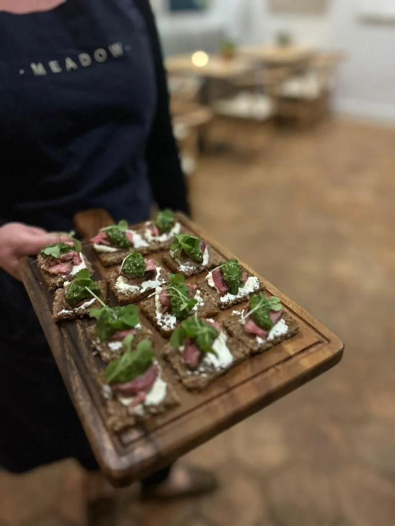 Food at Meadow is a passion. Our breakfast, brunch and lunch menu serves locally sourced, fresh and seasonal goodness. Take your time over a Meadow all day cooked breakfast or see what lunchtime brings with seasonal tarts, fresh and delicious salads topped with halloumi or smoked salmon. Pop in for a coffee and vegan carrot cake and treat the children to our smoothies and shakes.